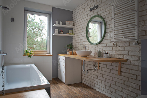 Check out our brick bathroom selection for the very best in unique or custom, handmade pieces from our shops. Enjoy free shipping on most stuff, even big stuff. Get trade quality bathroom design & installation at low prices. Know how the installation process might go and familiarize yourself with the material. Exposed brick and graphic gray and white floor tiles surround a gray bathroom vanity to create a gorgeous blend of contemporary style.