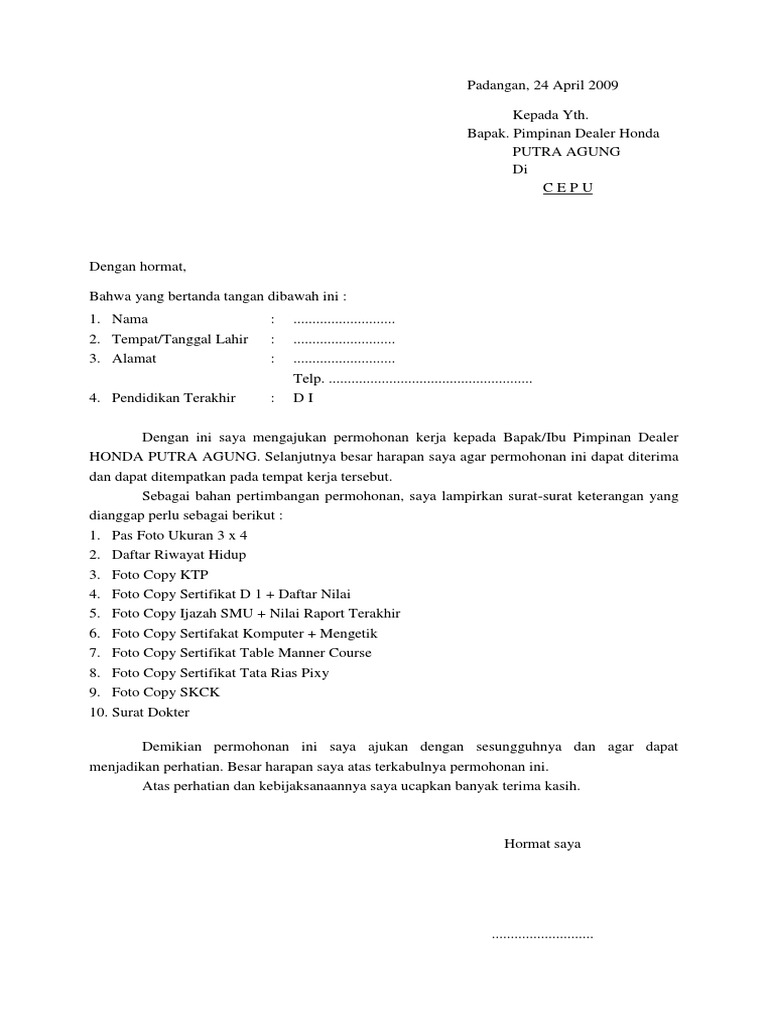 Ketika hendak melamar pekerjaan menjadi karyawan di berbagai instansi manapun pasti hal yang pertama dilakukan pelamar adalah membuat surat lamaran pekerjaan. Kita bisa mengisi surat dengan menjelaskan tentang diri kita sendiri dan posisi apa yang ingin nama lengkap tuliskan nama lengkap beserta gelar yang anda miliki. Dalam pembuatan surat lamaran kerja di pt anda harus menulis posisi yang sesuai dengan yang. Tuliskan contoh soal essay surat lamaran pekerjaan dan jawabannya! Berikut adalah berbagai contoh pertanyaan wawancara kerja beserta jawabannya untuk fresh graduate maupun yang sudah berpengalaman. Soal pilihan ganda tentang surat lamaran pekerjaan dan jawabannya kumpulan surat penting. Semoga dengan membaca artikel ini pembaca dapat meningkatkan kemampuan dasar bahasa inggris anda. Contoh surat yang akan dibahas kali ini adalah surat lamaran kerja. Postingan ini membahas contoh soal operasi bilangan pecahan yang disertai pembahasannya atau penyelesaiannya + jawaban. Seperti diatas, jawabannya dicetak tebal. Surat ini dibutuhkan guna melamar pekerjaan baru untuk kamu yang lulus kuliah, pindah kerja, cari suasana baru maupun fresh graduate. Tentang mengidentifikasi isi dan sistematika surat lamaran pekerjaan, msenyajikan simpulan sistematika dan berikut di bawah ini, soal essai/uraian bahasa indonesia kurtilas semester ganjil kelas 12 beserta jawaban dengan pertanyaan dimulai dari soal nomor 1. Jelaskan yg dimaksud dengan surat lamaran kerja!