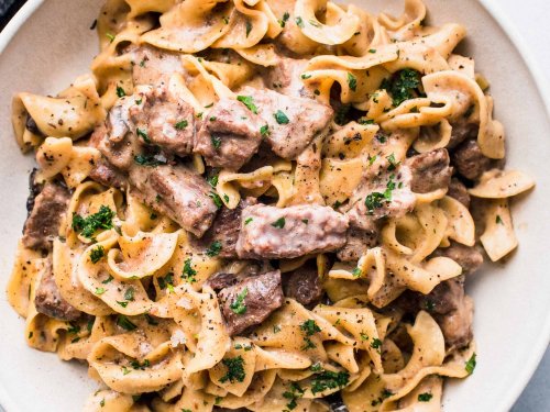 Add the sour cream, prime rib and salt and pepper to taste. Add remaining broth, browned meat, tomatoes, barley, potatoes, beef base, bay leaf, and thyme. Stir well and cook for another couple minutes until the prime rib is warmed through. Sunday supper is an amazon associate and may receive compensation for purchases made through affiliate links. Serve the stroganoff over hot cooked egg noodles, garnish with chopped parsley if desired.