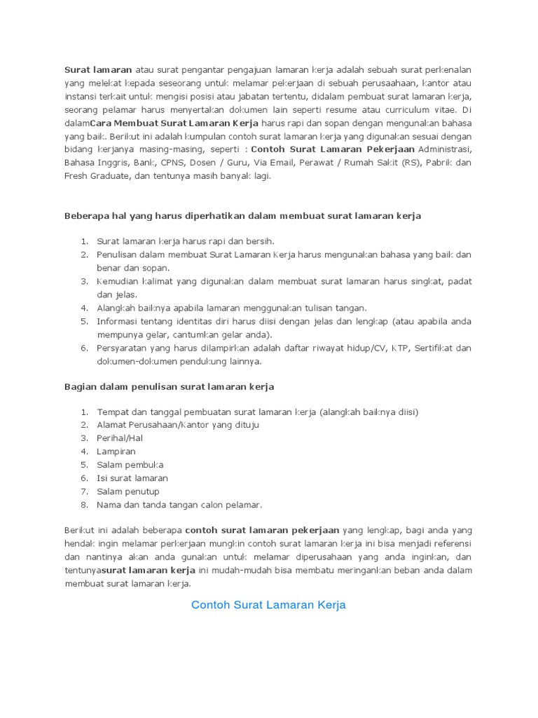 Atau dalam kata lain surat dari calon karyawan kepada calon majikan yang berisi permintaan agar calon majikan memberi. Demikian surat lamaran pekerjaan ini saya buat. Kumpulan contoh surat lamaran pekerjaan yang baik & benar beserta tips. Dalam pembahasan sebelumnya sudah dibahas mengenai contoh kalimat pembuka surat lamaran kerja yang baik. Saat menulis surat lamaran pekerjaan, harus menggunakan bahasa yang baik, sopan, benar.