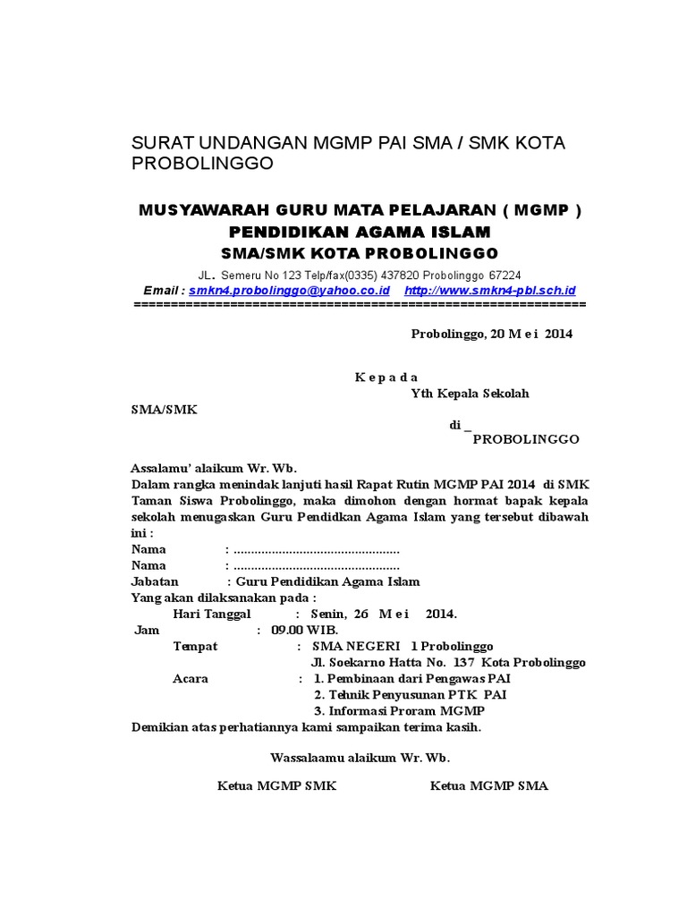 Musyawarah guru mata pelajaran (mgmp) bahasa inggris sma/smk/ma kabupaten sumedangjl. Pesta syukuran adalah jenis pesta yang banyak dilaksanakan dan dilakukan oleh orang indonesia. Surat undangan merupakan bagian terpenting dalam terlaksananya suatu kegiatan baik itu diselenggarakan oleh instansi pemerintah. Contoh surat undangan mgmp bahasa inggris kabupaten bondowoso. Contoh surat resmi yang pertama ini untuk undangan kerja bakti di sekolah, dengan tema gotong royong dalam hal atau ajakan undangan untuk membersihkan lingkungan serta lapangan yang ada dibelakang disekolah.