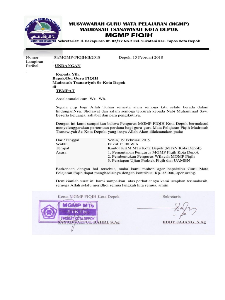 Surat undangan sendiri terdiri dari surat undangan resmi dan surat undangan tidak resmi. Musyawarah guru mata pelajaran bahasa inggris sekolah menengah pertama mgmp bahasa inggris smp sekertariat : Penulisan surat undangan ulang tahun tidak memiliki ketentuan yang baku seperti halnya surat resmi pemerintahan, perusahaan, organisasi dan lain sebagainya, yang terkadang memiliki aturan tersendiri sesuai fungsinya. Penulisan surat undangan tidak resmi menggunakan bahasa yang lebih luwes dan tidak dibatasi. Ricky hudhan yanuar s.pd, m.pd. Lalu apa yang kamu lakukan agar orang. 1 ( satu ) berkas perihal: Ini adalah contoh surat undangan rapat ketua rt dan pengurusnya. Savesave contoh surat undangan mgmp for later. Contoh surat undangan resmi paling lengkap, dikemas rapi dan menarik dengan menggunakan gaya bahasa yang enak dibaca, sehingga menciptakan rasa nyaman bagi para pembaca pada saat mempelajarinya. Situs penyedia berbagai contoh surat, seperti surat lamaran, pernyataan, izin, undangan dan contoh surat lainya. Penulisannya menggunakan kalimat baku dengan memperhatikan kaidah eyd. Contoh surat undangan resmi dapat digunakan agar surat undangan yang kamu buat sesuai surat undangan adalah salah satu surat yang memuat ajakan kepada seseorang atau kelompok stempel dan tanda tangan menjadi bukti kuat bahwa surat undangan berasal dari pihak resmi yang.