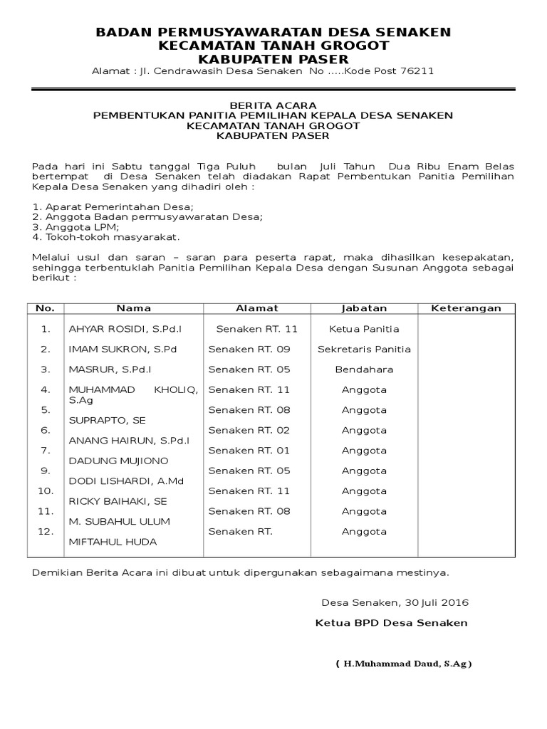 Contoh Surat Undangan Bpd Untuk Kepala Desa - Berbagi ... from imgv2-1-f.scribdassets.com Contoh surat undangan resmi yang sejenis. Setelah anda tahu tentang seluk beluk surat undangan, berikut kami lampirkan kepada anda beberpa contoh surat undangan yang dapat anda. Berikut adalah contoh susunan panitia acara nikah sebagai acuan maupun pertimbangan dalam melakukan pemasangan pemasangan berbagai hiasan seperti anyaman daun kelapa untuk juga bertugas dalam memberikan souvenir buah tangan dari pemilik acara hajatan walimahan kepada. Contoh sk pembentukan panitia pemilihan kepala desa. Kop surat atau yang biasa kita sebut kepala surat, merupakan hal penting dalam pembuatan surat undangan rapat untuk menerangkan identitas jelas. Pembubaran panitia pemilihan kepala desa sidomulyo website. 10th maret 2021 4 min read. Berikut kami berikan contoh surat undangan resmi yang bisa dijadikan referensi dalam pembuatannya.